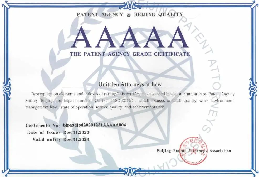 On June 4, 2021, the Beijing Intellectual Property Office and the Beijing Patent Attorneys Association held the awarding ceremony of 2020 patent agency rating in Beijing, and Unitalen was awarded as Beijing "AAAAA Patent Agency", the highest grade, once again.