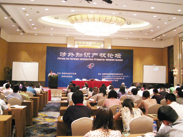 由蘇州市知識產權局、蘇州市商務局主辦,北京集佳知識產權代理有限公司、美國凱威萊德國際律師事務所、蘇州高新區知識產權局共同承辦的“涉外知識產權論壇”于6月30日在蘇州香格里拉大酒店隆重舉行。蘇州市知識產權局副局長施衛兵和蘇州市商務局副局長王志明出席論壇并致辭。