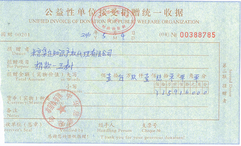2010年5月4日,集佳員工代表將善款轉交至中華慈善總會玉樹賑災專項行動,并代表集佳全體員工表達了一個共同的愿望:與全國人民一起,為玉樹重建溫暖的家園!