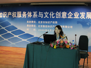 2009-06-296月26日,由北京市知識產(chǎn)權局主辦,北京集佳知識產(chǎn)權代理有限公司協(xié)辦的知識產(chǎn)權服務體系與文化創(chuàng)意發(fā)展探討會在京舉行,吸引了來自30余家文化創(chuàng)意企業(yè)的知識產(chǎn)權代表前來參加。