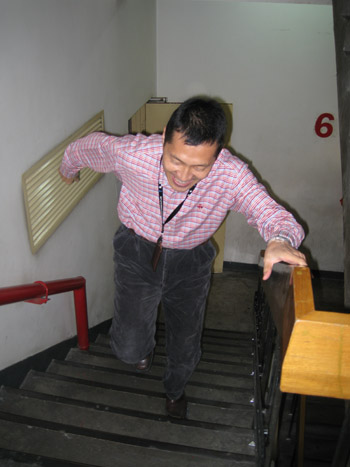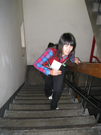 本次爬樓比賽采取兩人一組的形式進行,隨著裁判員一聲令下,集佳健兒便奮力猛沖,開始了體能大比拼。看著他們輕盈的身影,后面等待的選手便不由自主地充當起了啦啦隊,歡呼雀躍,為他們鼓掌加油。比賽中,選手們奮力拼搏,也互相幫助,雖然爬樓不算大運動量的體育活動,但全程11層的樓梯爬起來也并非易事,即使是這樣,每一名選手都堅持到了終點。由于本次比賽的初衷就是建議大家環保節能,“少乘電梯,多爬樓梯”,因此賽前組織者就在樓梯間張貼了環保小貼士。選手們在爬樓過程中也不忘學習樓道中提示的環保小常識,在最后的環保題目小測驗中,各隊表現都十分出色,幾乎全部答對。