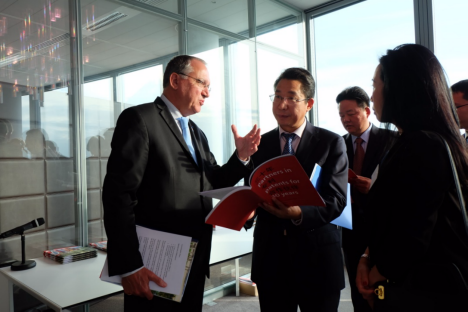 歐洲專利局局長巴迪斯達利(左)與中國國家知識產(chǎn)權局局長申長雨(左二) (圖片來源:唐書悅)