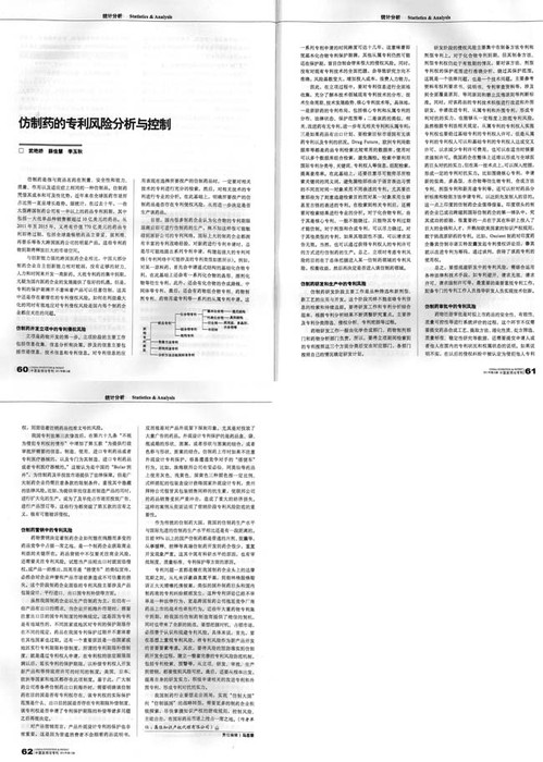 《中國發明與專利》:仿制藥的專利風險分析與控制