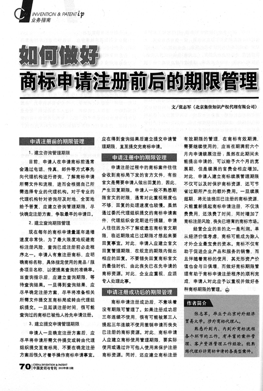 《中國發明與專利》:如何做好商標申請注冊前后的期限管理