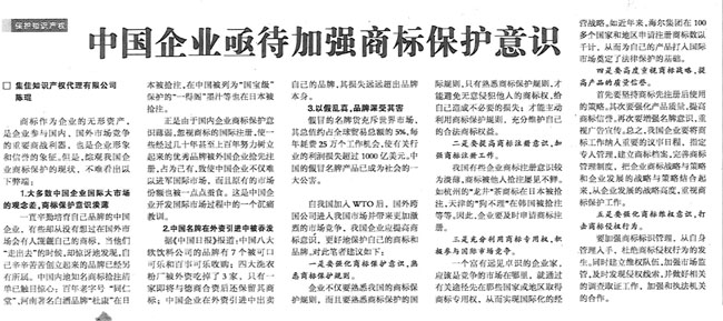 《國際商報》:中國企業亟待加強商標保護意識