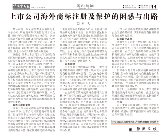 《中國貿易報》:上市公司海外商標注冊及保護的困惑與出路