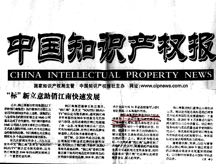 《中國知識產(chǎn)權(quán)報》:"標(biāo)"新立意助俏江南快速發(fā)展
