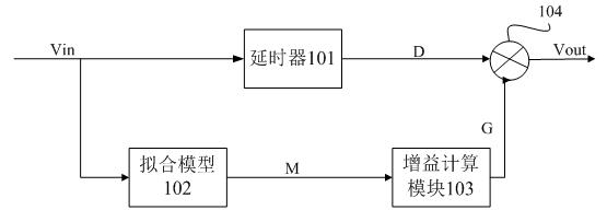 例如,在下述一件美國(guó)專利申請(qǐng)中,公開(kāi)了一種信號(hào)處理辦法,通過(guò)預(yù)設(shè)的擬合模型擬合計(jì)算出輸入信號(hào)的擬合幅度,對(duì)擬合幅度進(jìn)行判斷并根據(jù)判斷結(jié)果進(jìn)行處理得到對(duì)應(yīng)的增益信號(hào),基于增益信號(hào)對(duì)延時(shí)處理輸入信號(hào)得到的延時(shí)信號(hào)進(jìn)行處理得到的輸出信號(hào)。通過(guò)上述結(jié)構(gòu)簡(jiǎn)單的信號(hào)處理裝置及系統(tǒng)進(jìn)行信號(hào)處理,不僅計(jì)算量小,而且還能提高處理信號(hào)的效率和處理效果。具體結(jié)構(gòu)請(qǐng)參見(jiàn)下述附圖。