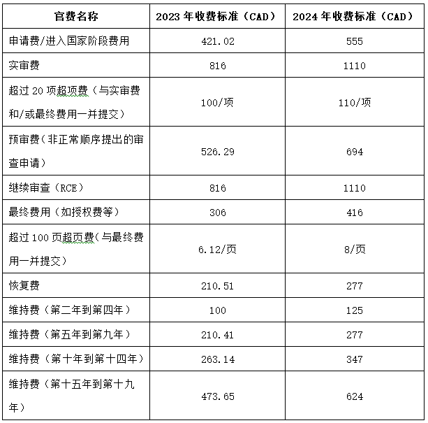 這次調整將是加拿大20年來首次全面調整官費標準。此次調整旨在將大部分官費提高25%,但小實體費用不作調整。然而,由于考慮到通貨膨脹,根據單獨的立法,實際上繳納給加拿大知識產權局 (CIPO) 的許多費用每年都是變化的,并且最近的通貨膨脹率很高,因此2024年的實際費用增幅將高達36%。