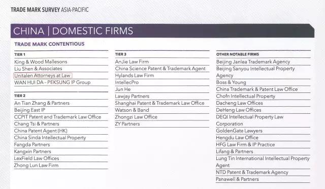 日前,全球權(quán)威知識產(chǎn)權(quán)雜志Managing Intellectual Property (MIP)公布“2017知識產(chǎn)權(quán)之星” 商標(biāo)業(yè)務(wù)排行榜,集佳在“商標(biāo)申請”和“商標(biāo)訴訟”領(lǐng)域穩(wěn)居中國區(qū)第一梯隊(Tier 1)。