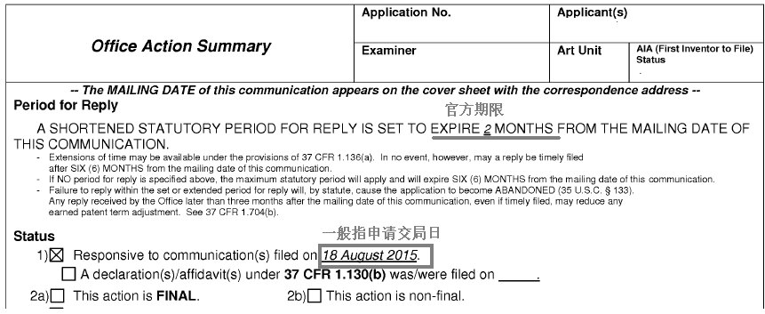 審查員在NR之后發(fā)出的最終審查意見通知書,F(xiàn)R的官方答復(fù)期限為FR發(fā)文日起的三個(gè)月內(nèi)。