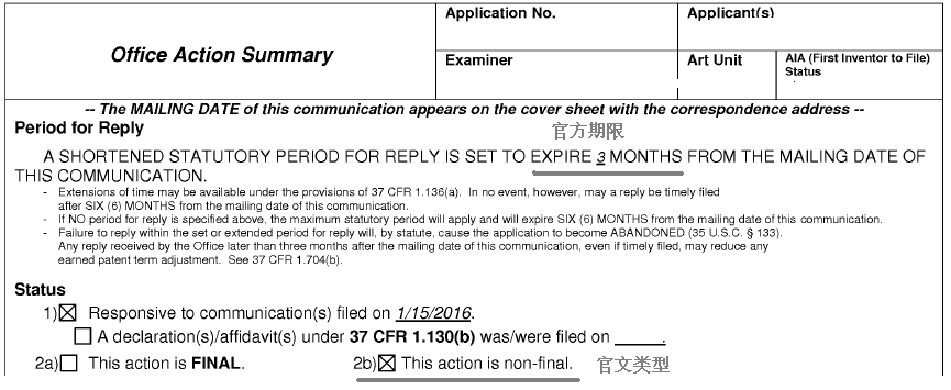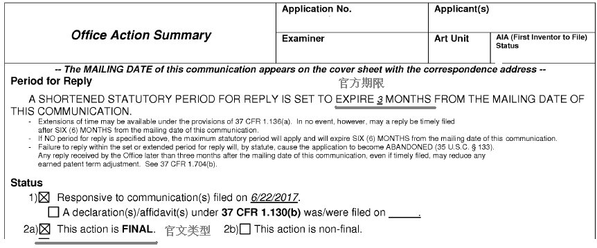 美國(guó)的OA官文類型分為RR/Non-final OA/Final OA/AA。