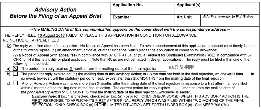 1.3.2.4 Advisory Action傾向性意見(簡(jiǎn)稱AA)