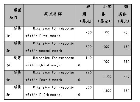 表1-2-6 美國(guó)官文答復(fù)延期費(fèi)標(biāo)準(zhǔn)