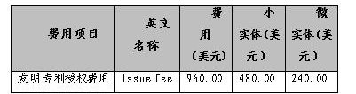 應(yīng)根據(jù)申請(qǐng)人的類型,核對(duì)授權(quán)費(fèi)。美國(guó)專利授權(quán)費(fèi),如表1-2-8所示。
