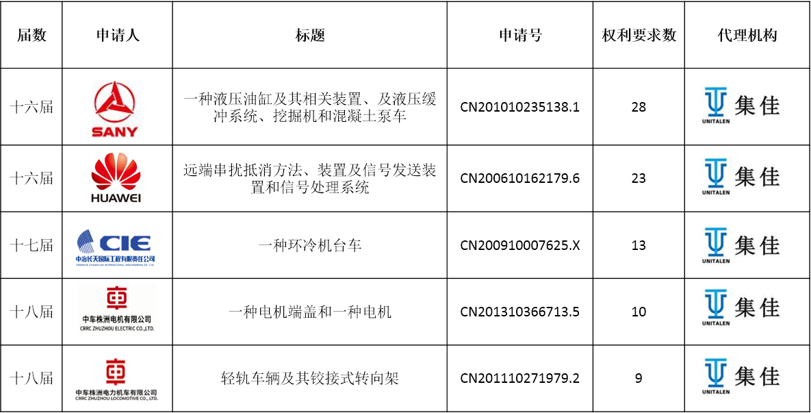 下表為集佳代理的獲獎專利清單。祝賀獲獎的專利權(quán)人和發(fā)明人。