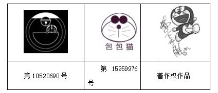 結合前文所引案例及案例一、二來看,這幾組案例的作品均為知名漫畫《哆啦A夢》中的主要角色,哆啦A夢及哆啦美。由于該作品在中國已經連續播放并傳播了多年,其漫畫形象影響了80后、90后甚至是00后的多代人。對于中國大陸相關公眾而言,不僅認識哆啦A夢及哆啦美的全貌,而其對其具有代表意義的顏色、眼睛的位置、鈴鐺、口袋也十分熟悉,并將其與漫畫《哆啦A夢》建立聯系。而在本文開頭所引案例中的被異議商標,其選擇了哆啦美的耳朵、哆啦A夢頭部的上半部分、哆啦A夢的鈴鐺及其日語表現等多個具有突出特點的部分而組合;案例一中的第10520690號系爭商標由鈴鐺、口袋、哆啦A夢的頭部等具有突出特點的部分組成;第15959976號系爭商標則以哆啦A夢的頭部為圖形部分;案例二種的系爭商標選用哆啦A夢的藍色、口袋、鈴鐺以及哆啦美的黃色和頭部等具有突出特點的部分組成。這些商標雖然整體與漫畫《哆啦A夢》中哆啦A夢及哆啦美的整體形成差異明顯,但是其均選用了這些作品中具有突出顯著性和明確指向性的部分,而相關公眾看到這些要素后,極易聯想到享有著作權的漫畫《哆啦A夢》的相關形象。在這幾個案例中,不論是商標局的決定書還是商評委的裁定書中均有類似的表述,即“系爭商標與異議人引證的上述漫畫作品中的卡通形象在設計構思、表現手法和視覺效果等方面相近,又構成實質性近似”。