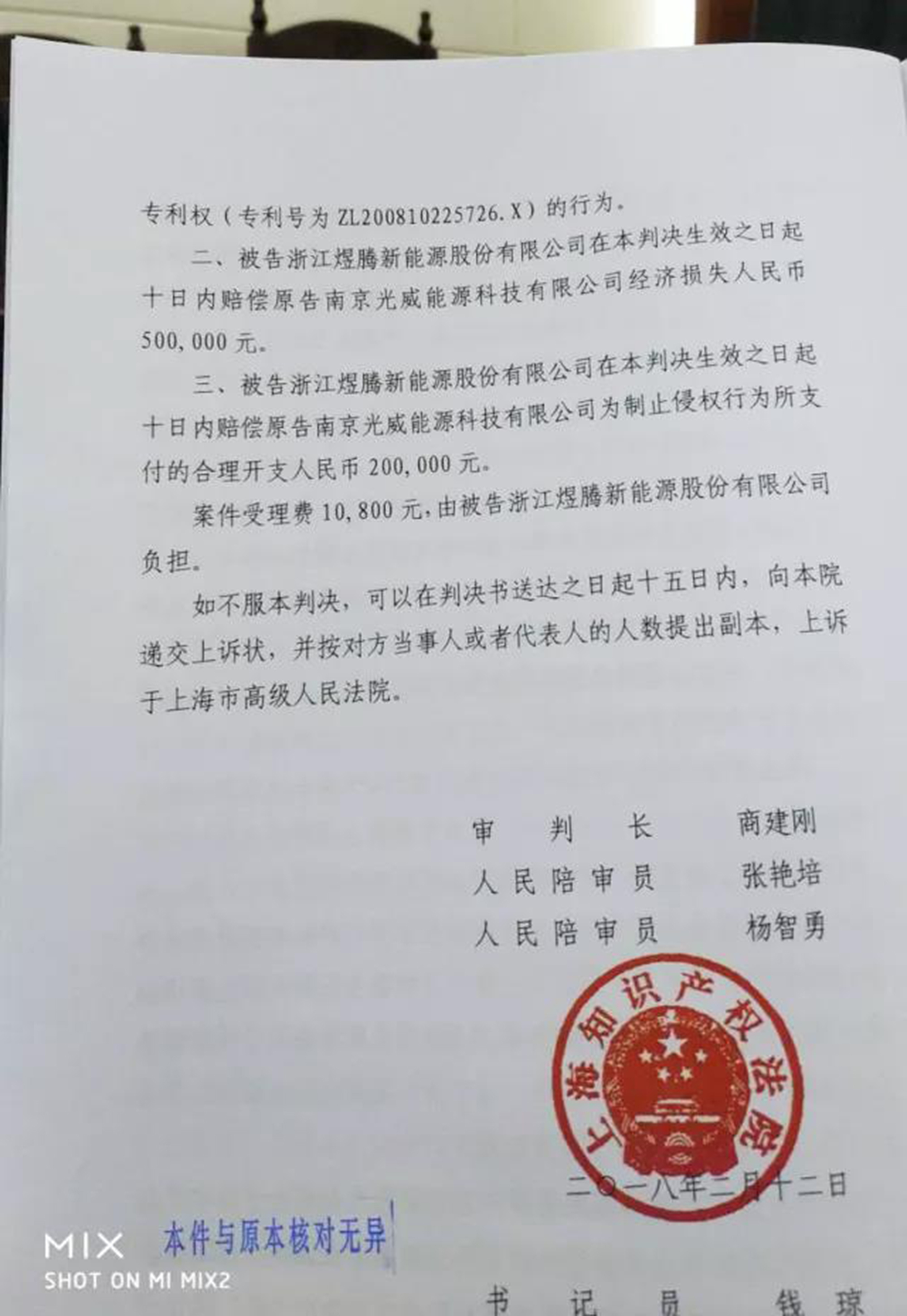 集佳代理南京光威能源科技有限公司(以下簡稱“光威公司”)訴浙江煜騰新能源股份有限公司(以下簡稱“煜騰公司”)侵害發明專利權糾紛一案,經上海知識產權法院一審查明事實后,于2018年2月12日宣判:被告煜騰公司制造、銷售、許諾銷售的被控“板式太陽能集熱器產品”落入涉案專利權的保護范圍,被告在判決生效之日起停止侵害涉案發明專利權的行為,并全額支持了原告主張的侵權損害賠償及合理開支。