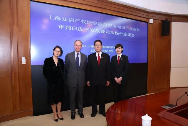 4月20日,上海知識(shí)產(chǎn)權(quán)法院與中國(guó)(上海)自由貿(mào)易試驗(yàn)區(qū)管委會(huì)聯(lián)合召開(kāi)涉自貿(mào)區(qū)知識(shí)產(chǎn)權(quán)案件審判白皮書(shū)發(fā)布暨司法保護(hù)座談會(huì)。上海市高級(jí)人民法院副院長(zhǎng)張斌、浦東新區(qū)副區(qū)長(zhǎng)王靖、上海知識(shí)產(chǎn)權(quán)法院院長(zhǎng)王秋良、浦東新區(qū)知識(shí)產(chǎn)權(quán)局局長(zhǎng)林本初出席,集佳侯玉靜律師、黃鶯律師陪同拉菲羅斯柴爾德集團(tuán)CEO Prats先生、中國(guó)市場(chǎng)部經(jīng)理宋萍經(jīng)理參加,與來(lái)自十余家知名企業(yè)的代表、權(quán)威媒體共同見(jiàn)證了白皮書(shū)的發(fā)布,并應(yīng)邀出席司法保護(hù)座談會(huì)。