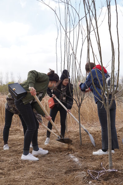 到達植樹基地,大家熱情高漲,立刻投入到植樹勞動中。有人挖坑,有人扶苗,有人培土,有人澆水,各個環節有條不紊,不管是白發蒼蒼的爺爺奶奶,還是稚氣十足的小朋友,每個人都忙的不亦樂乎,處處是一派熱火朝天的景象。盡管褲腳上沾滿了沙土,額頭上冒出了汗珠,但大家絲毫不在意,依然干勁十足,一時間,在歡聲笑語中,植樹基地呈現出初春的生機與歡樂。