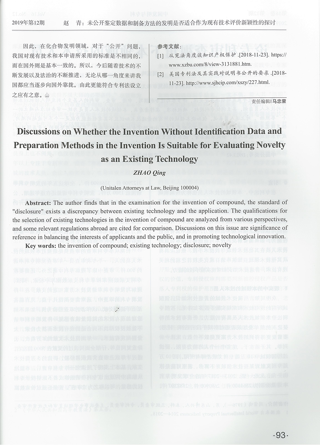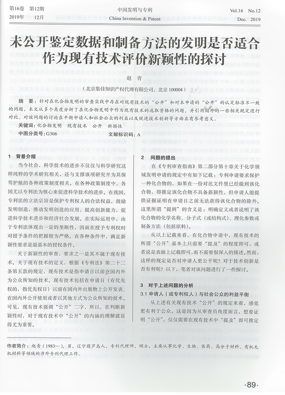 集佳文章《未公開鑒定數據和制備方法的發明是否適合作為現有技術評價新穎性的探討》在《中國發明與專利》 發表