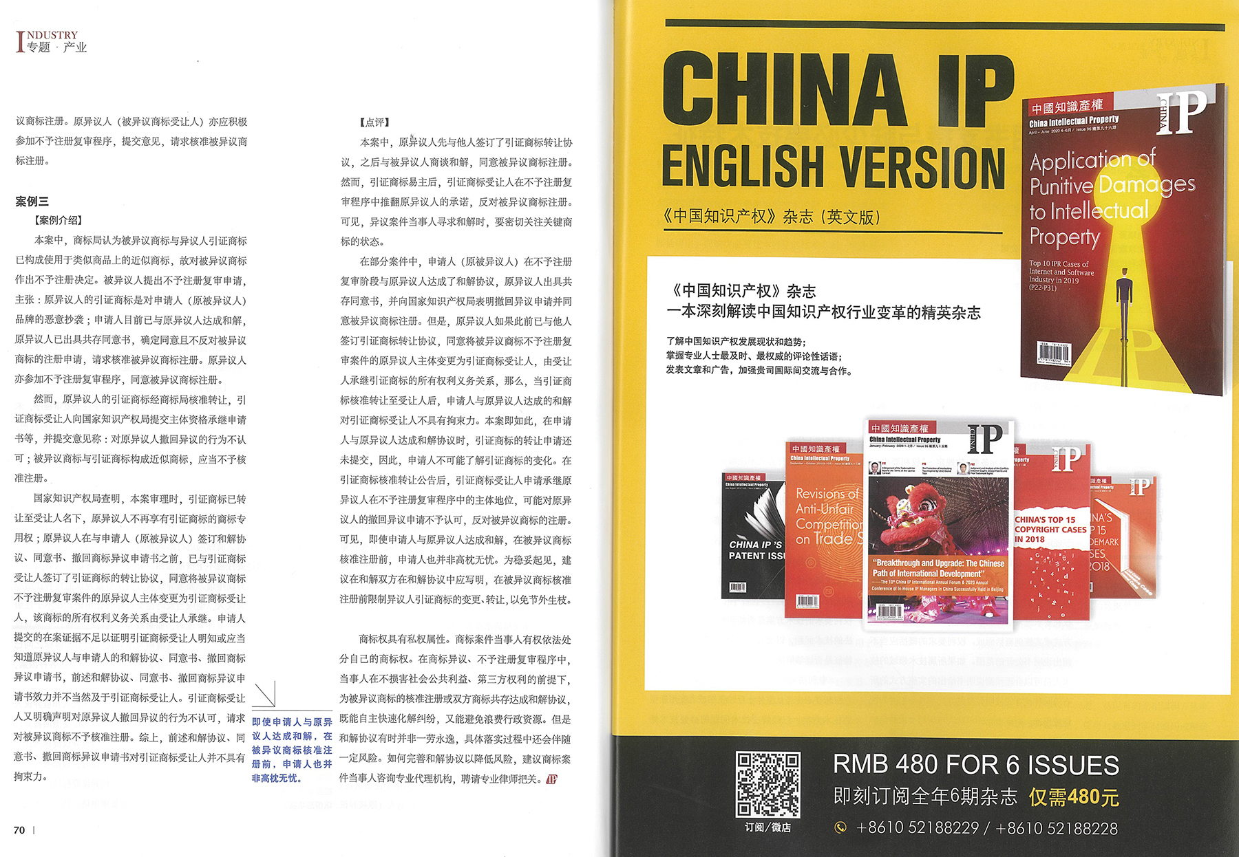 集佳文章《小議商標異議、不予注冊復審案件的和解風險》在《中國知識產權》發表