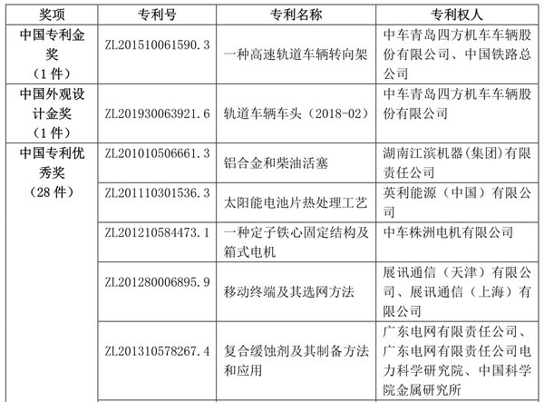 6月25日,國家知識產權局發布了第二十二屆中國專利獎授獎決定,為30項發明、實用新型專利授予中國專利金獎,10項外觀設計專利授予中國外觀設計金獎,60項發明、實用新型專利中國專利銀獎,15項外觀設計專利中國外觀設計銀獎,825項發明、實用新型專利中國專利優秀獎,56項外觀設計專利中國外觀設計優秀獎。