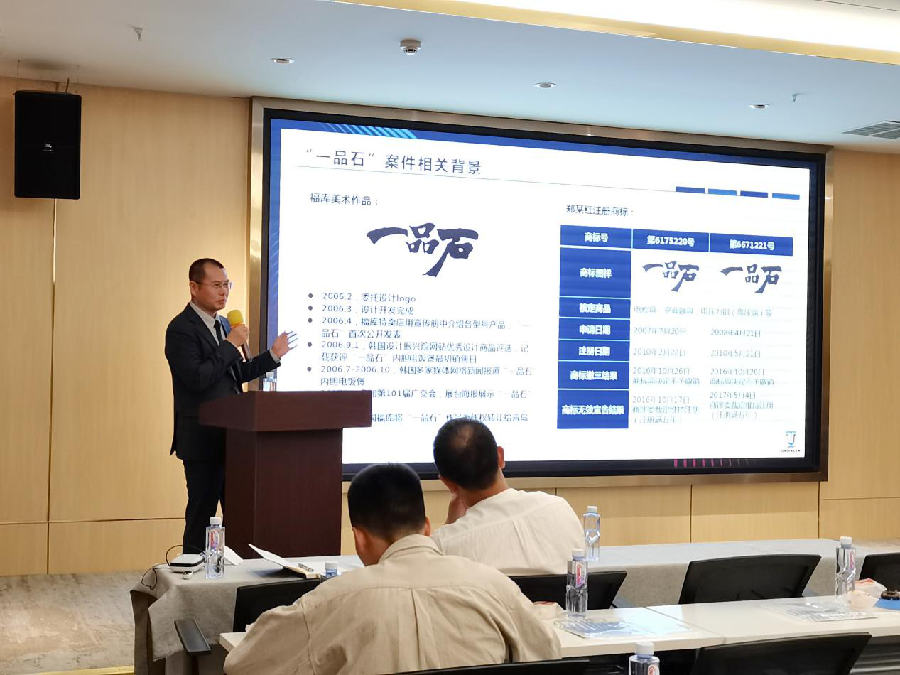 閆春德律師從自己代理的多個案例為企業(yè)說明反守為攻類、馳名認(rèn)定類、商標(biāo)商號復(fù)合類等商標(biāo)案件的注意事項,特別是“一品石”案件,引起了問答環(huán)節(jié)各參會嘉賓的積極提問:商標(biāo)字體是否會侵犯著作權(quán)?立體造型的作品申請外觀專利還是立體商標(biāo)更好?……閆律都耐心地做出解答。