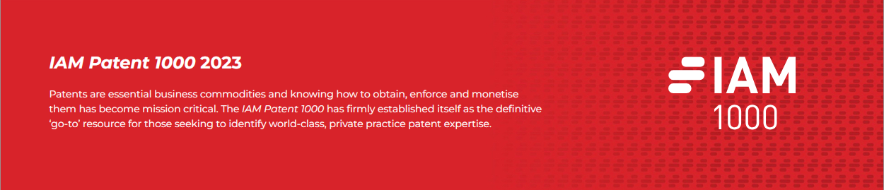近期,國際權威知識產權媒體IAM(Intellectual Asset Management)公布了2023年度“IAM全球專利1000強”(IAM PATENT 1000)評選結果,集佳憑借在專利領域的杰出表現及客戶的廣泛認可,連續9年入選“專利確權”和“專利訴訟”兩大領域的年度推薦事務所名錄。同時,集佳合伙人李德山副所長獲評“專利訴訟”和“專利確權”兩大領域杰出個人,合伙人李洋副所長和潘煒博士榮登“專利確權”領域杰出個人推薦榜單。