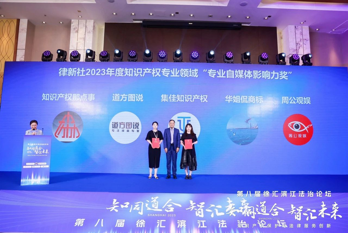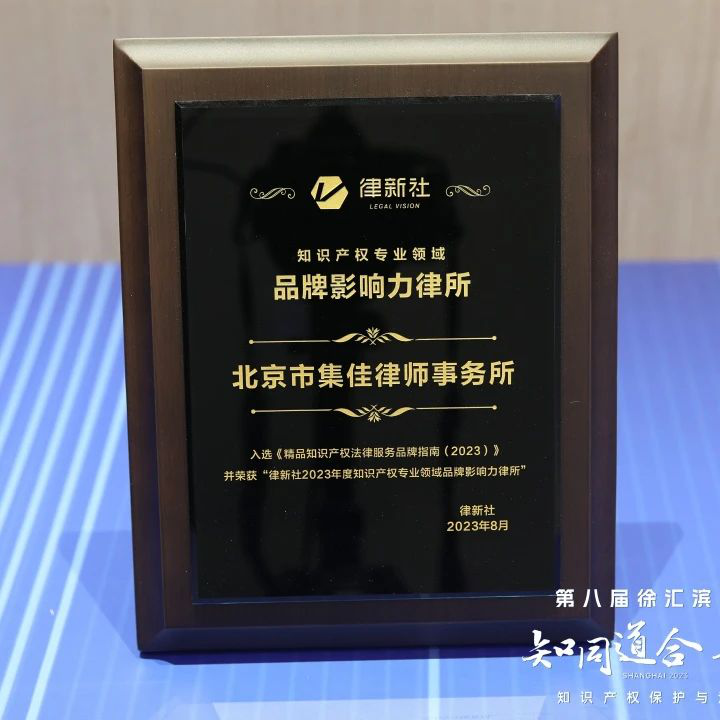 論壇上,主辦方律新社首次發(fā)布了《精品知識產(chǎn)權(quán)法律服務品牌指南(2023)》,并在申報與調(diào)研的基礎(chǔ)上,綜合專家評審會、同行評價、客戶評價等多方信息,根據(jù)專業(yè)服務及品牌表現(xiàn),隆重頒發(fā)律新社2023年度知識產(chǎn)權(quán)專業(yè)領(lǐng)域“品牌影響力律所”和“品牌之星”律師榮譽。北京市集佳律師事務所憑借卓越的綜合實力和豐富的訴訟經(jīng)驗入選“品牌影響力律所”榜單,集佳律所主任、合伙人李永波律師與合伙人閆春德律師被授予“實力律師”榮譽稱號,合伙人侯玉靜律師被授予“匠心律師”榮譽稱號,“集佳知識產(chǎn)權(quán)”公眾號獲評“專業(yè)自媒體影響力獎”。