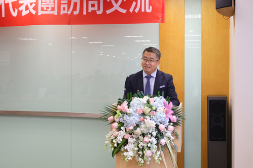 于澤輝所長對代表團蒞臨集佳考察表示熱烈歡迎,并與海商會副會長王桂良先生、副會長兼秘書長黃旭昇先生互相交換禮物。