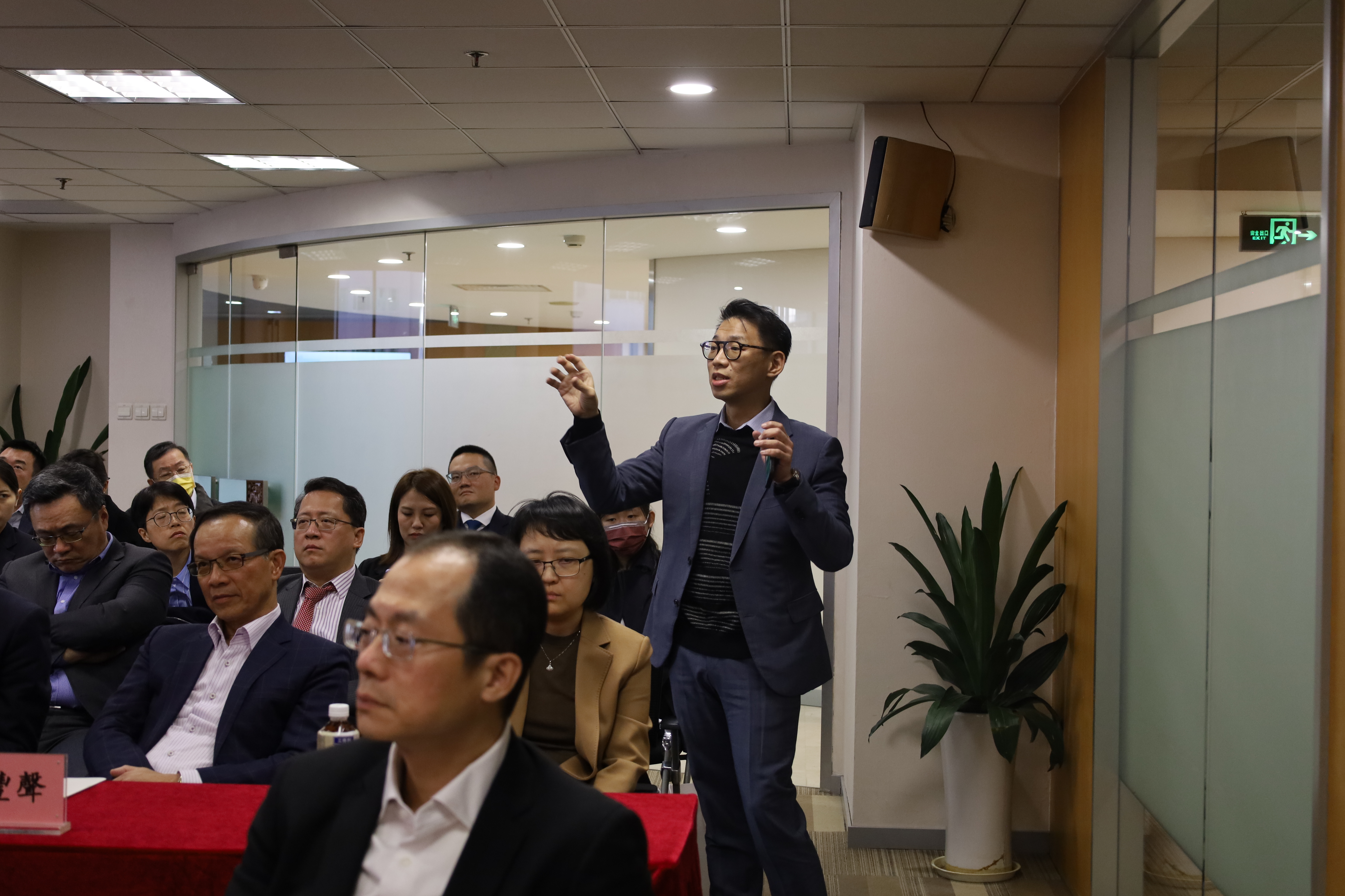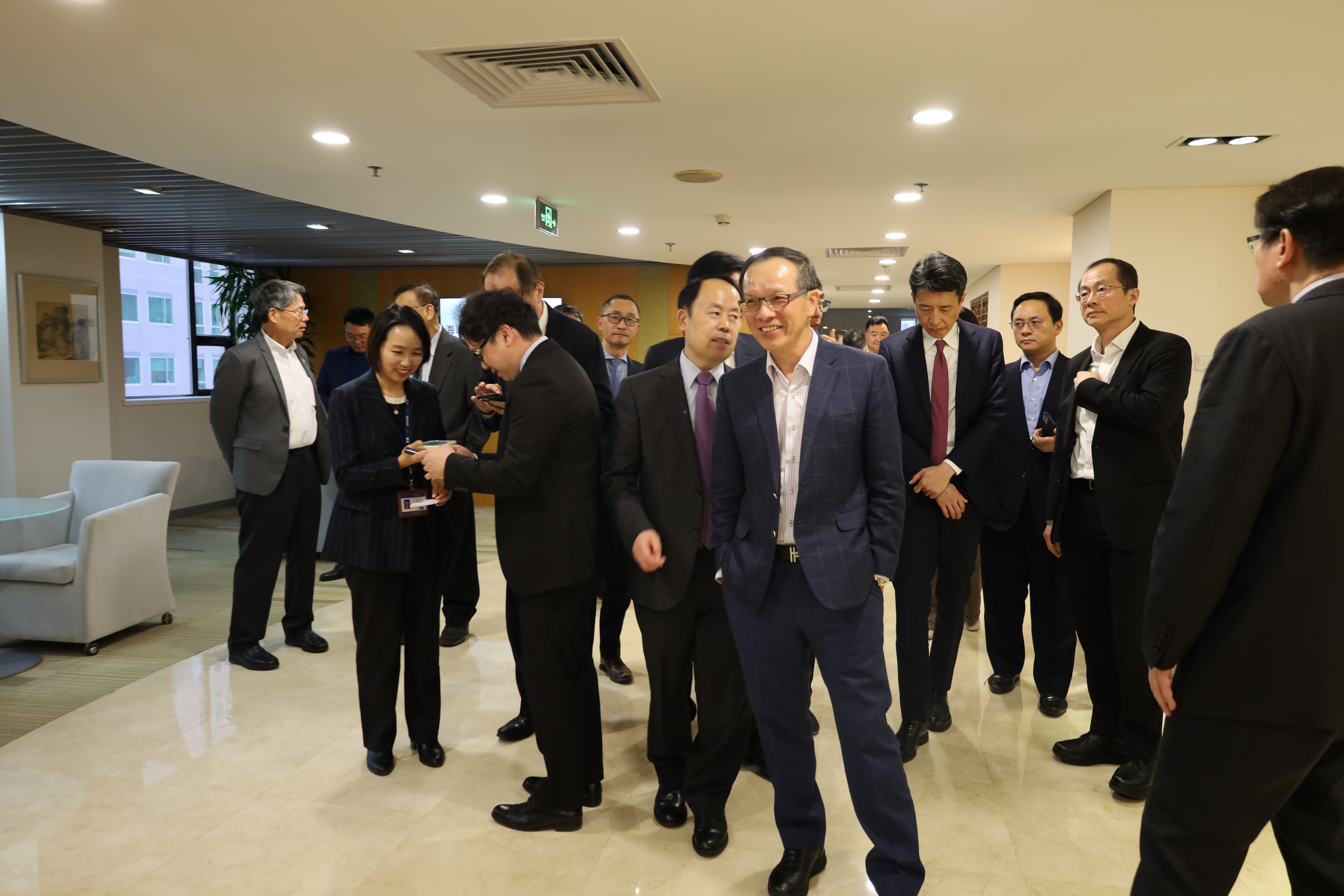 于澤輝所長對代表團蒞臨集佳考察表示熱烈歡迎,并與海商會副會長王桂良先生、副會長兼秘書長黃旭昇先生互相交換禮物。