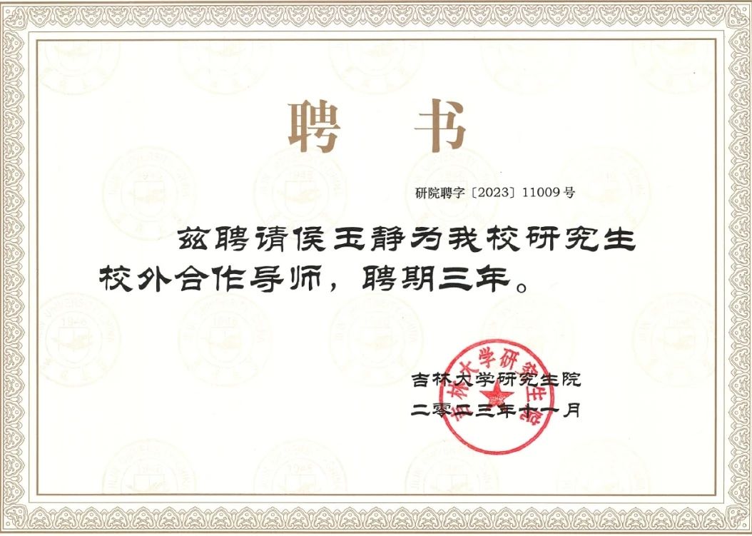 近日,吉林大學(xué)研究生院發(fā)布了研究生校外合作導(dǎo)師聘任名單,集佳合伙人侯玉靜律師受聘成為吉林大學(xué)研究生校外合作導(dǎo)師。
