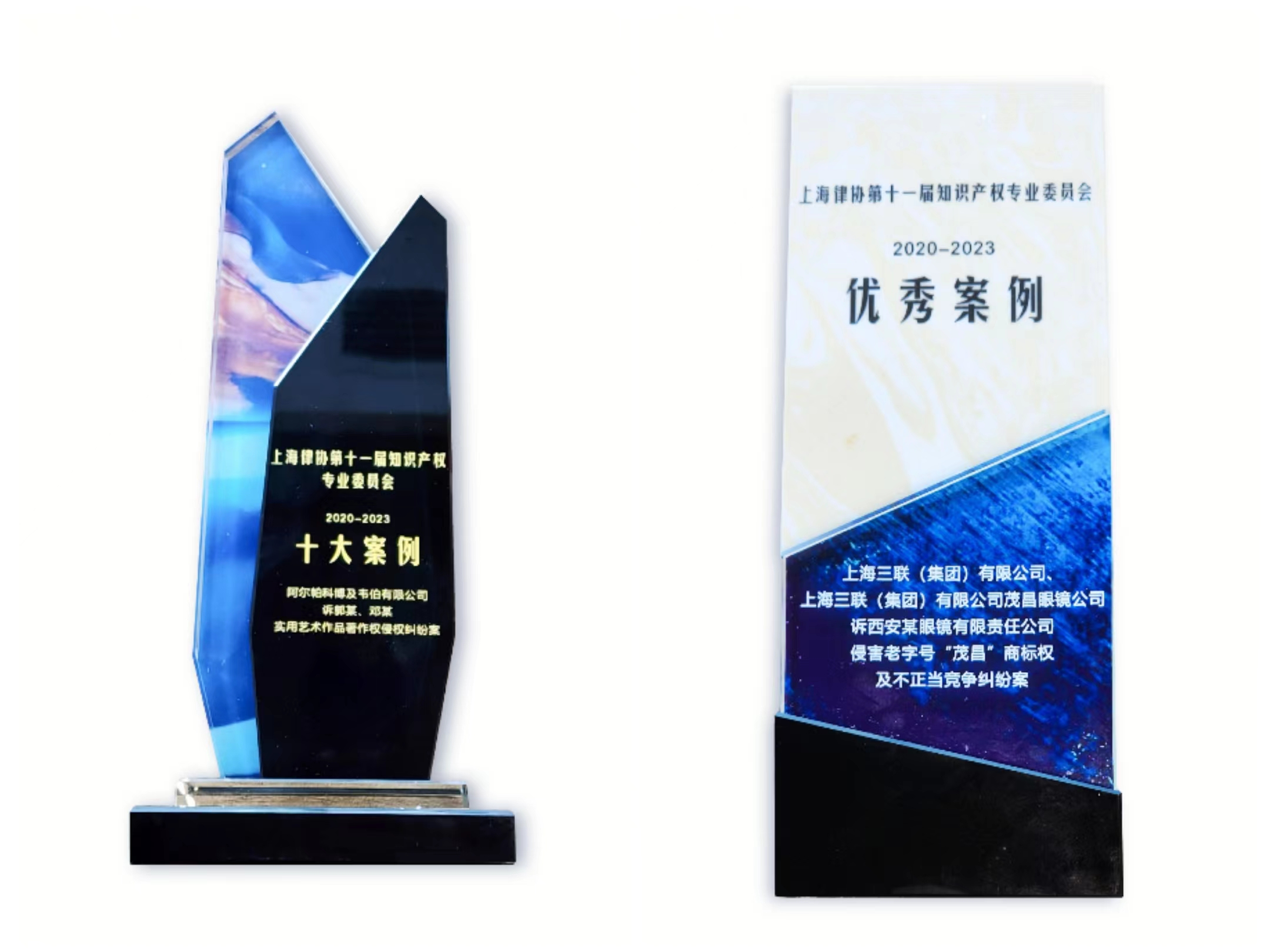 The case selected as "Outstanding Cases" is the case concerning a dispute over trademark infringement of the time-honored brand "茂昌" and unfair competition between Shanghai Sanlian (Group) Co., Ltd., Maochang Optical Co., Ltd. of Shanghai Sanlian (Group) Co., Ltd., and a certain Optical Co., Ltd. in Xi'an, represent by Attorneys LI Bo and SU Rouwen.