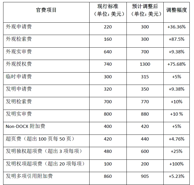 ? 提高外觀設(shè)計(jì)申請費(fèi)用,以應(yīng)對通貨膨脹;