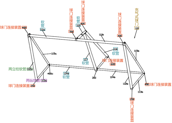 “一種充氣式球門,其包括:若干軟管;若干球門連接裝置,所述球門連接裝置用于連接所述軟管;所述若干軟管連接成球門狀,其中,所述若干球門連接裝置中至少一個具有充/排氣閥,其特征在于:所述球門連接裝置進(jìn)一步包括:至少兩個接頭,所述接頭前端具有倒齒;固套,所述固套放置于所述接頭中以支撐所述接頭;以及外環(huán);所述外環(huán)套在所述倒齒上。”