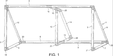 無被訴決定針對權(quán)利要求1的創(chuàng)造性主要涉及廣州市毅拓體育用品有限公司(簡稱毅拓公司)、紹興市太一文具有限公司(簡稱太一公司)提交的兩份證據(jù),附件1,公開號為GB2422322A的英國專利,公開一種充氣運動球門。附件3,授權(quán)公告號為CN2230865Y的中國實用新型專利,其公開了一種上水管接頭。