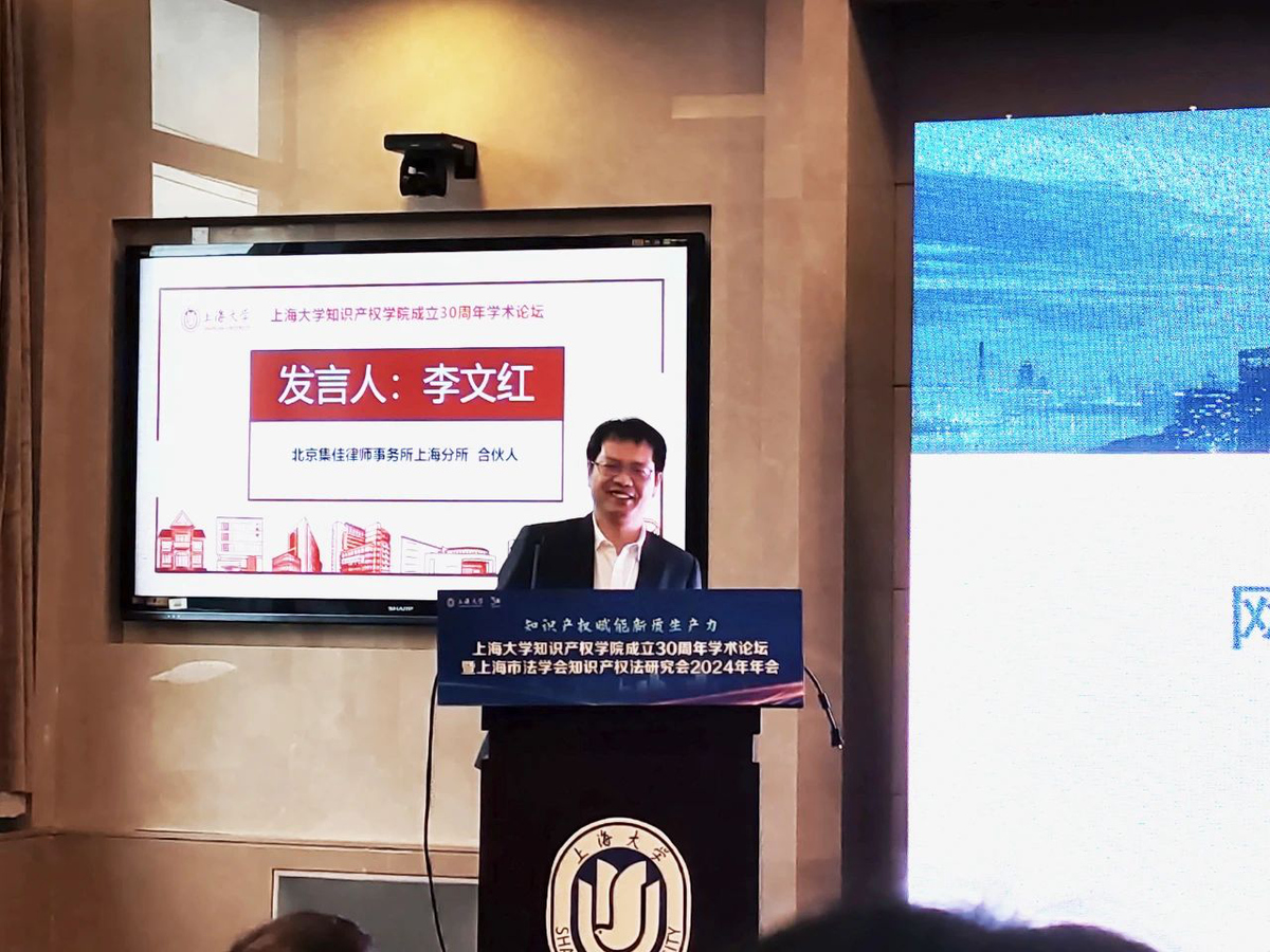 集佳律所上海分所主任、高級知識產(chǎn)權(quán)師李文紅博士應(yīng)邀出席大會,并在“釋放知識產(chǎn)權(quán)價值 賦能新質(zhì)生產(chǎn)力”分論壇上發(fā)表演講,與來自眾多高校的專家學者和業(yè)界代表共同就知識產(chǎn)權(quán)價值的釋放與賦能新質(zhì)生產(chǎn)力的路徑進行了深入探討。