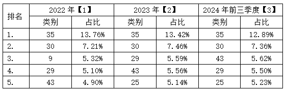 【3】基于國家知識產(chǎn)權(quán)局商標(biāo)局《2024年三季度各省、自治區(qū)、直轄市商標(biāo)注冊申請量、注冊量按類別統(tǒng)計(jì)表》