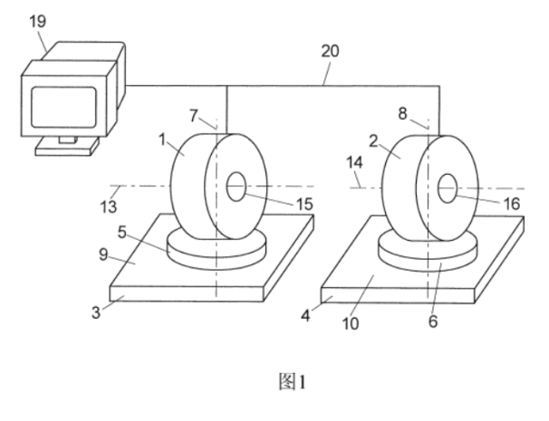 所述運動元件(1,2)相對于相應的中間元件(17,18)能夠彼此無關地分別圍繞第二運動軸線(11,12)運動,其中所述第二運動軸線(11,12)基本上平行于相應的所述基礎元件(3,4)的延伸面(9,10),基本上垂直于所述第一運動軸線(7,8)且基本上垂直于所述轉動軸線(13,14)伸展。