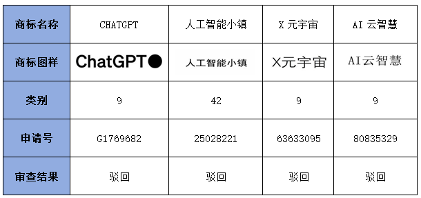 在人工智能領域,審查實踐中被認定缺乏顯著性而未獲注冊的商標,具體表現為直接使用或簡單組合行業通用詞匯,這些名稱被同業經營者普遍用于描述自身產品或服務。此類標志無法幫助相關公眾區分商品或服務的來源,反而會被視為對技術功能或內容的直接描述,具有明顯的公共屬性,若被一家獨占將損害公平競爭,因此依法不得作為商標注冊。