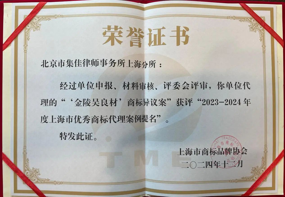 集佳代理兩件案例分別獲評2023-2024年度“上海市優秀商標代理案例”及“上海市優秀商標代理案例提名”