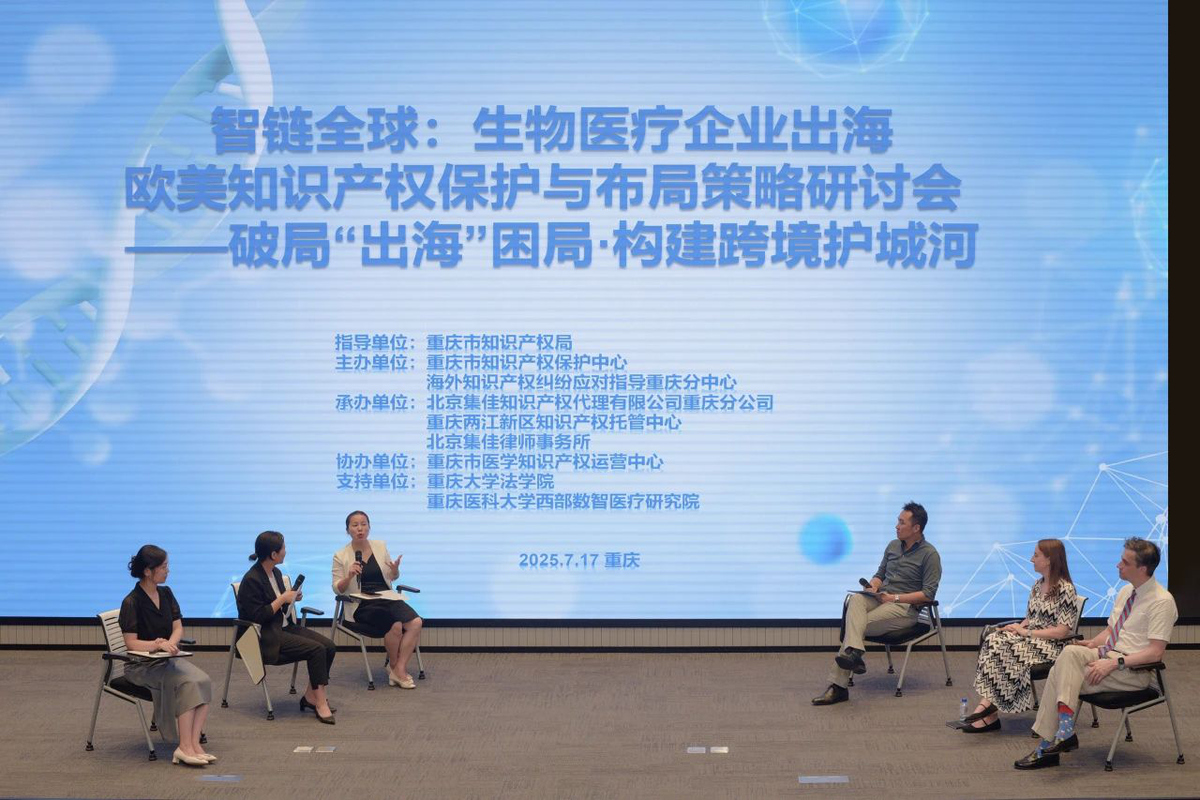 2025年7月17日,由重慶市知識(shí)產(chǎn)權(quán)保護(hù)中心、海外知識(shí)產(chǎn)權(quán)糾紛應(yīng)對(duì)指導(dǎo)重慶分中心主辦,北京集佳知識(shí)產(chǎn)權(quán)代理有限公司重慶分公司聯(lián)合重慶兩江新區(qū)知識(shí)產(chǎn)權(quán)托管中心、北京市集佳律師事務(wù)所共同承辦的 “生物醫(yī)療企業(yè)出海歐美知識(shí)產(chǎn)權(quán)保護(hù)與布局策略研討會(huì)” 在渝順利召開(kāi)。本次會(huì)議特邀歐美頂級(jí)知識(shí)產(chǎn)權(quán)律師及本地專家學(xué)者,聚焦企業(yè)出海痛點(diǎn),為重慶生物醫(yī)療企業(yè)破解歐美知識(shí)產(chǎn)權(quán)壁壘提供專業(yè)指引。